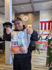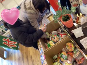 野菜詰め放題、お菓子詰め放題、カップラーメン詰め放題、おみくじ抽選会、スナイパーターゲット、大好評です‼